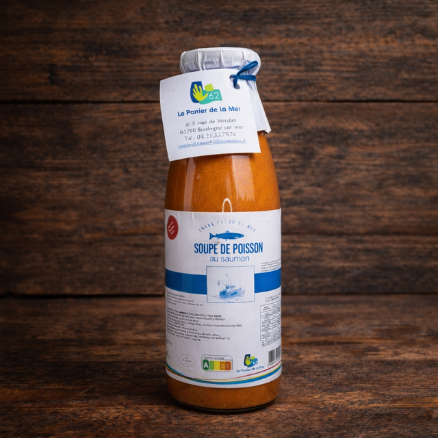 Soupe de poisson stérilisée au saumon conçue par les Paniers de la mer, atelier de réinsertion à l'emplois
